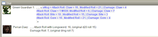After all the attacks are defined, I can click another button, visible in the first image above, 'NPC Attack', and the results will spit out to Maptool's chat window.